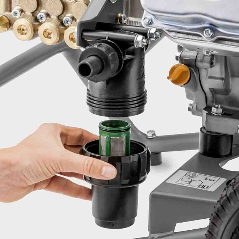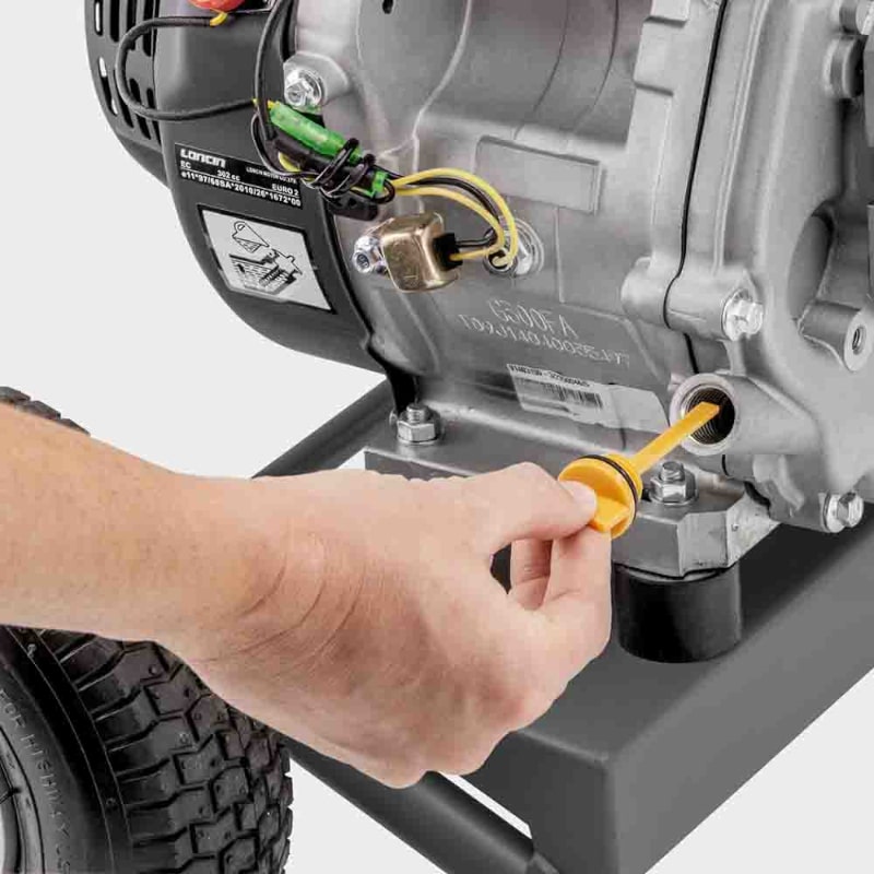 Móvil y de fácil mantenimiento: la HD 6/15 G. Con motor de combustión, concepto de accesorios inteligente y bomba de cigüeñal resistente. Ideal para el sector de la construcción y la agricultura. Caudal de agua: 600 l/h.