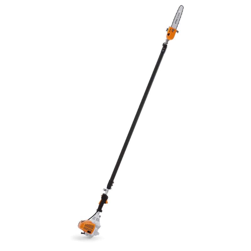 El corte de ramas altas y difíciles de acceder dejará de ser un dolor de cabeza con la podadora de altura HT 101, con su barra extensible llega a donde el operador con motosierra no puede alcanzar.